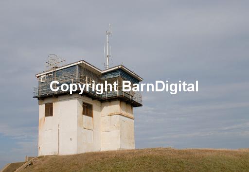 white watch unused tower tatty shabby run down old MIchaelGrantImages Michael Grant mast green grass decrepit construction coast guard building BarnDigital Barn Digital architecture antenna aerial