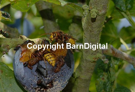yellow Wasp sting six legged science rotten protective colouration plum nature mould MIchaelGrantImages Michael Grant juice Insecta Insect Hymenoptera fruit eye eat devour compound eye colouration coloration brown big BarnDigital Barn Digital Apocrita