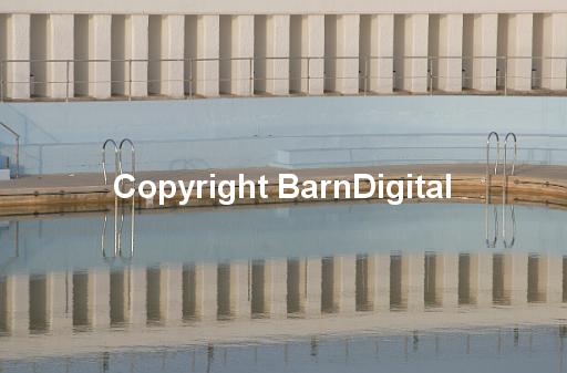 architecture Barn Digital BarnDigital bathe blue building changing rooms construction design lido Michael Grant MIchaelGrantImages pool reflection sea water swim swimming pool water white