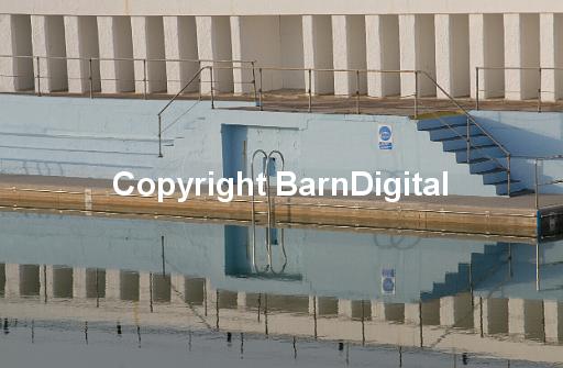 white water swimming pool swim sea water reflection rail pool MIchaelGrantImages Michael Grant lido ladder design construction changing rooms building blue bathe BarnDigital Barn Digital architecture