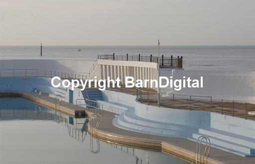architecture Barn Digital BarnDigital bathe blue building changing rooms construction design ladder lido Michael Grant MIchaelGrantImages pool rail reflection sea sea water step swim swimming pool water white