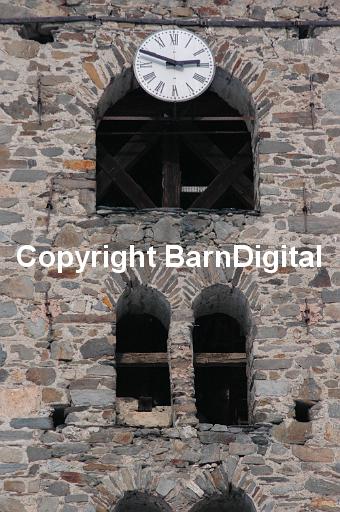 stone arch time ski sun snow travel holiday blue sky church clock stone buidling spire Val Torens Les Menuires BarnDigital Barn Digital Michael Grant