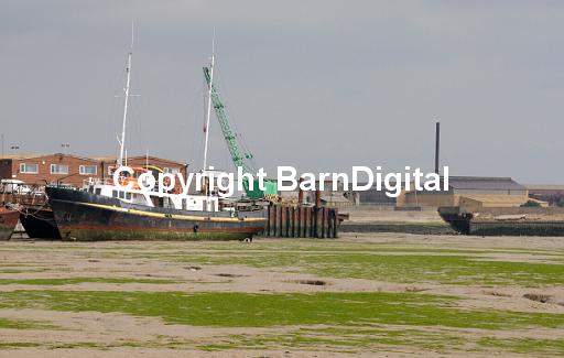 Barn Digital BarnDigital boat estuary green grey industry marine maritime Michael Grant MIchaelGrantImages mud ocean river sea ship vessel water