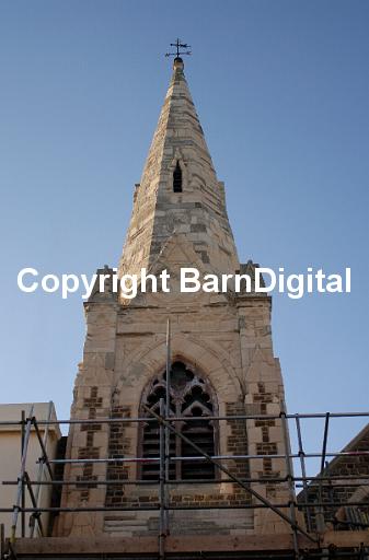 architecture Barn Digital BarnDigital brick bright building Christian Christianity church Church of England construction deconsecrate historic history light Michael Grant MIchaelGrantImages parish church point pointed religion roof scaffold seaside secularise shadow sky spire tower weather vane