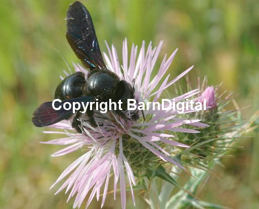 Big, black and dramatic Carpenter bee (Xycocopa violacea) feeedi