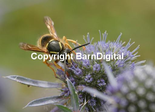 yellow jacket Hymenoptera Apocrita Vespidae vespid science nature nectar white flight flower insect insecta proboscis compound bright summer plant botany weed green flower pollen blossom anther filament stigma style pistil male female herb herbaceous plant wildlife wild life closeup close up BarnDigital Barn Digital Michael Grant