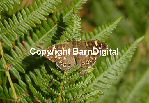 leaf frond fern Pteridophyta butterfly nectar pollen colour fly flight Lepidoptera Satyridae insect insecta proboscis scale compound eye summer science nature wildlife wild life closeup close up BarnDigital Barn Digital Michael Grant