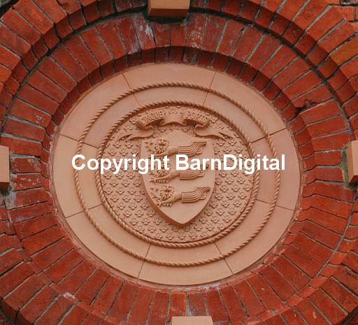 Confederation traditon historic Hastings Romney Hythe Dover Sandwich trade ship port arms shield wall brick stone construction decoration circle BarnDigital Barn Digital Michael Grant