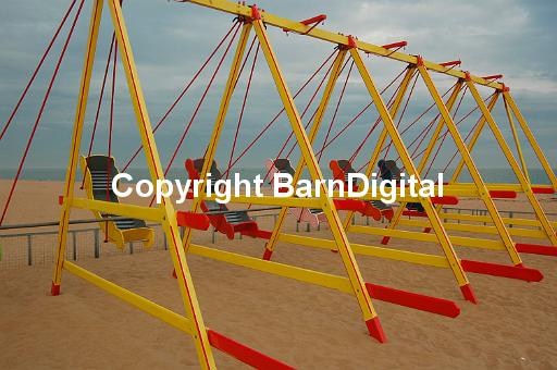 swing yellow orange sea seaside beach sand holiday fun amusement child children empty meloncholy sad travel BarnDigital Barn Digital Michael Grant