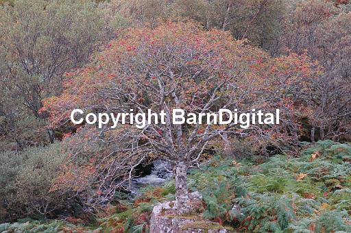 red mountain hillside water waterfall tree leaf fall autumn berry seed science nature plant botany bird food bounty red rose family Rosaceae wildlife wild life BarnDigital Barn Digital Michael Grant