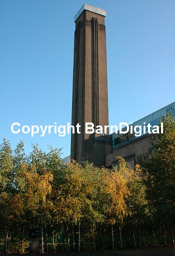 The splendid brick chimney of the Tate Modern Gallery building which was originally the Bankside Power Station, designed by Sir Giles Gilbert Scott. Southwark London, UK. 15 November 2005.
