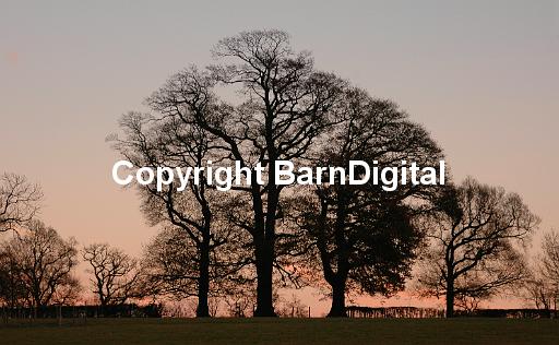 autumn winter fall sunset sky evening cold dusk twilight still silent bare tree branch twig hedge field skyline grass fence silhouette blue pink green plant tree beech family Fagaceae landscape Michael Grant Barn Digital BarnDigital